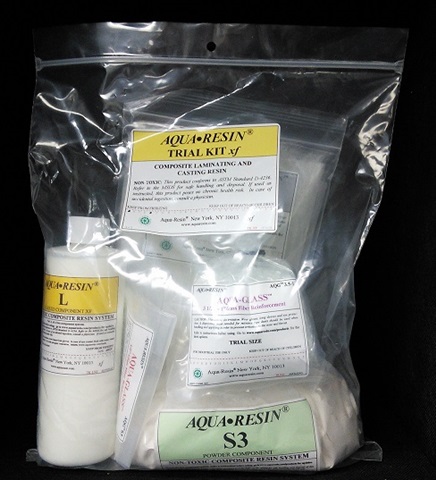 Trial Kit Includes- 8 oz. “L” Liquid Component- 24 oz. “S3″ Powder Component- Aqua-Veil, 10mil and 30mil Samples- Aqua-Glass, 0.5″ and 3.5” lengths