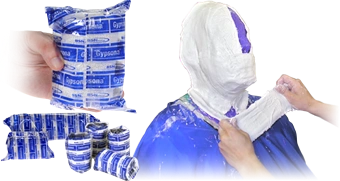 Gypsona® Plaster Bandages remain the industry standard for making a fast, strong support shell specially in lifecasting applications. The bandages are immersed in water and layered over cured a silicone rubber mold. When dry, they form a rigid support shell (or “mother mold”) that holds the rubber mold in shape during the casting process.