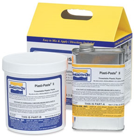 Smooth-On Plasti-Paste II is a two component fiber-filled resin that is designed for vertical surface application. This no-odor formulation is an improved version of our original Plasti-Paste® formula, and the cured product is different in the following ways: