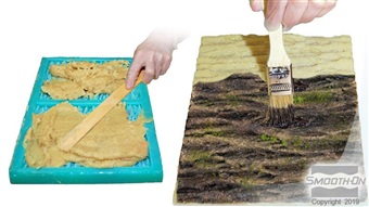 Mixed material holds a vertical surface without sagging and cures to a strong, durable and lightweight plastic. Liquid material can be pigmented with So-Strong® color tints from Smooth-On. This plastic can be used for creating themed environments or special effects, used as a “mother mold” material to reinforce rubber molds and a variety of other applications.