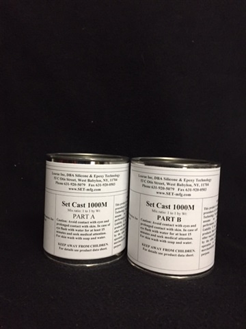 A two-component, room cure epoxy design for potting applications filled with non-abrasive fillers Set-Cast 1000 M has a mix ratio of 1:1 by volume.