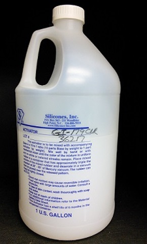 GI 179 A is an activator which when used in place of the standard activator will increase the tensil strength and elongation and decrease the shore A hardness of the cured silicone rubber. These changes are observed in the GI-Series bases with a shore A hardness of 25 or less. It is recommended for use where maximum stretch is required: glove molds, vacuume molds and block molds.