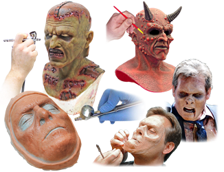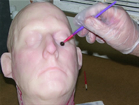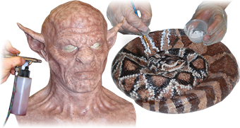 Brushing Onto A Platinum Silicone Appliance Or Model – Make sure all surfaces are clean. Add the desired amount of Silc Pig™ pigment to Psycho Paint™ Part B and mix thoroughly. Add an equal amount of Psycho Paint™ part A and mix thoroughly. Add solvent if desired. You can then apply Psycho Paint™ with a brush. A common application technique is to use a “stippling” effect.