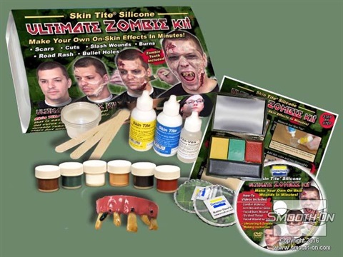 Make your own Zombie with the Smooth-ON Ultimate Zombie Kit.Kit includes 4oz. Skin Tite Silicone, 1oz. Thi-Vex Thickening Agent, 6 Silc Pig Pigments, Makeup, Zombie Teeth, Mixing Sticks and Cups, and a Step-By-Step How-To Guide and DVD